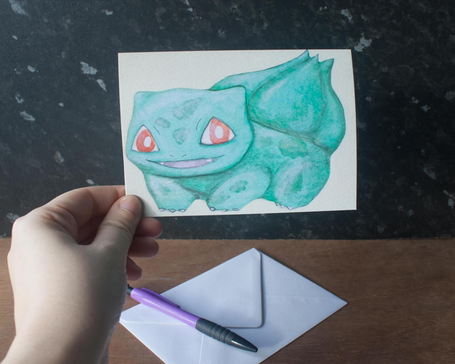 Bulbasaur Pokemon Greetings Card/Mounted Print (blank inside)