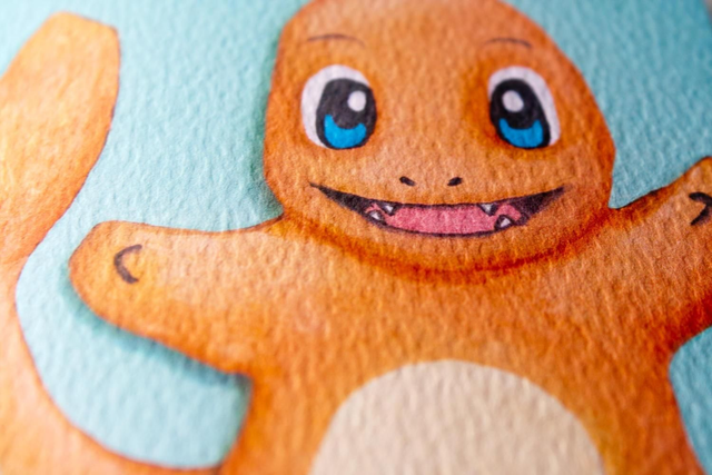 Charmander Pikachu Pokemon Greetings Card/Mounted Print (blank inside)