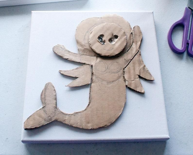 The instructions will talk you step-by-step through the process of cutting out the template and using it to draw and cut out the cardboard shapes. You will then put your cardboard shapes together and stick them onto the blank canvas, cover them in the modroc (bandages with plaster of Paris in) and once the modroc is set and dry use your own paints to finish your masterpiece.