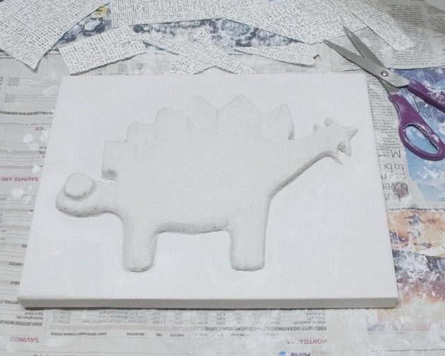 The instructions will talk you step-by-step through the process of cutting out the template and using it to draw and cut out the cardboard shapes. You will then put your cardboard shapes together and stick them onto the blank canvas, cover them in the modroc (bandages with plaster of Paris in) and once the modroc is set and dry use your own paints to finish your masterpiece.