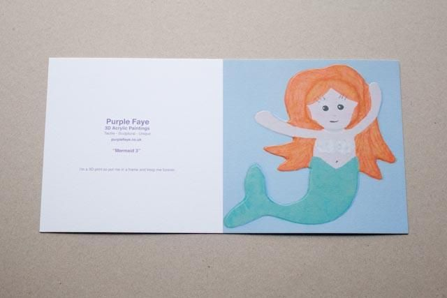 This premium mermaid card reproduces a stunning Purple Faye Art 3D acrylic painting of a magical mermaid. Perfect for fantasy lovers, ocean enthusiasts, and whimsical occasions.
