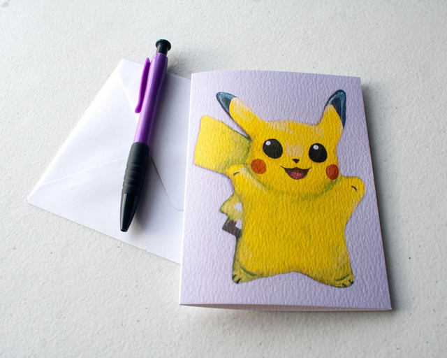 Greetings card featuring Pikachu Pokemon.