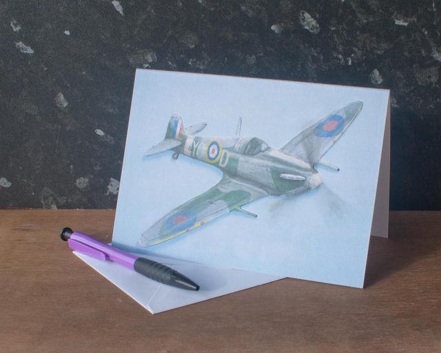 Ideal for aviation fans, collectors, and special occasions. Premium quality card celebrating Britain's most famous fighter plane through beautiful original artwork.
